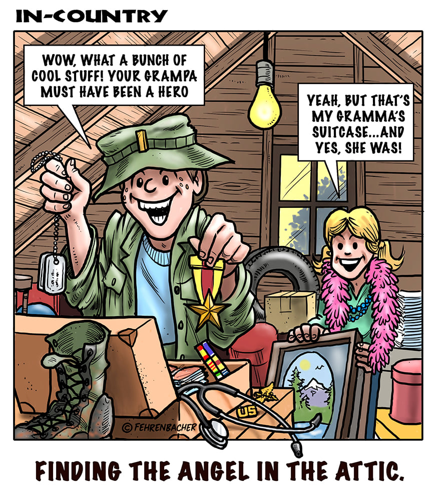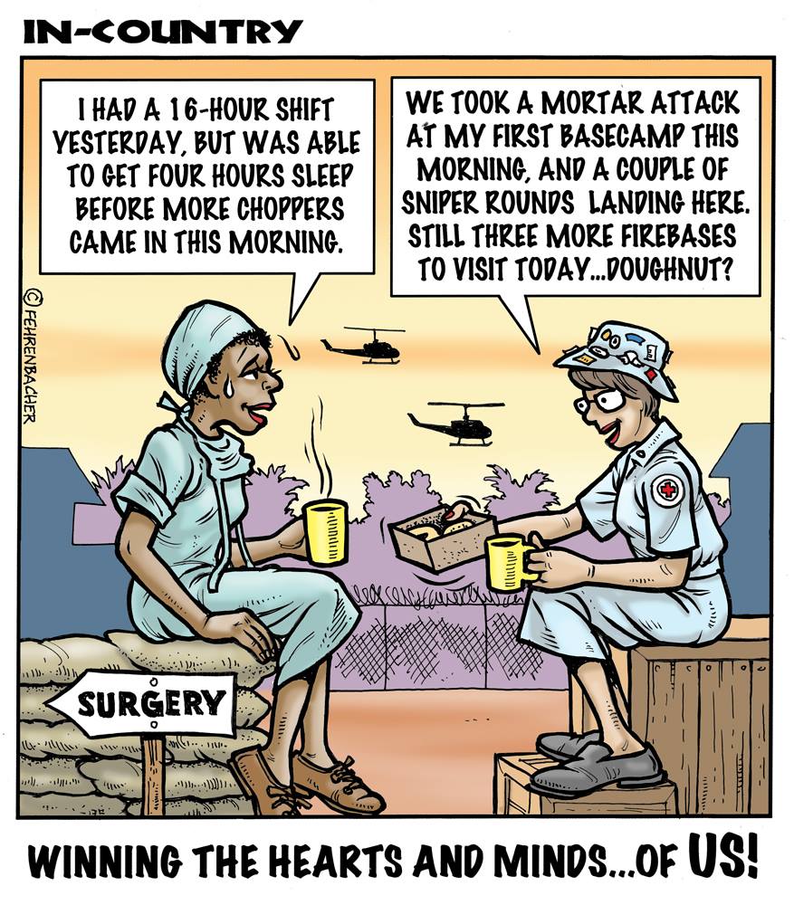 Phil enlisted in the Army in 1965 where you served for years in Vietnam. He became a graphic designer and has worked for the state of Oregon for 26 years. He retired in 2003 and started the Cartoon "In-Country". The cartoons reflect his experiences during his tour of duty in South Vietnam.