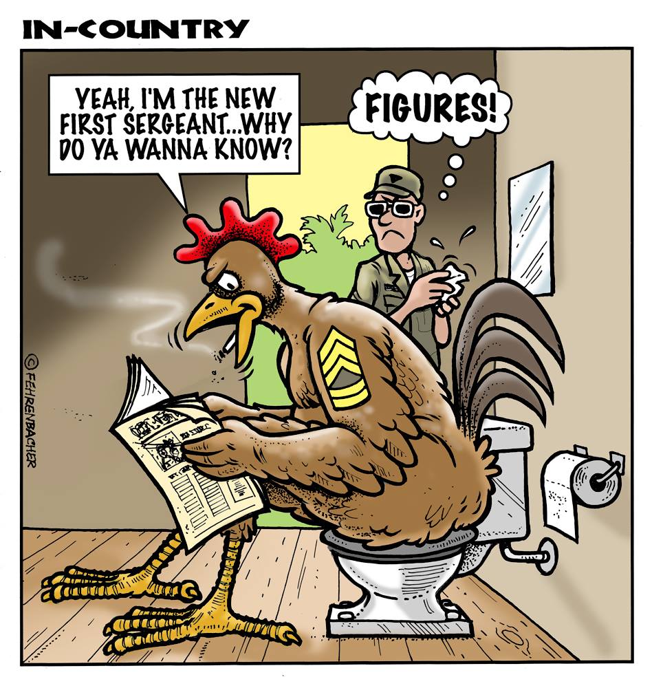 Phil enlisted in the Army in 1965 where you served for years in Vietnam. He became a graphic designer and has worked for the state of Oregon for 26 years. He retired in 2003 and started the Cartoon "In-Country". The cartoons reflect his experiences during his tour of duty in South Vietnam.