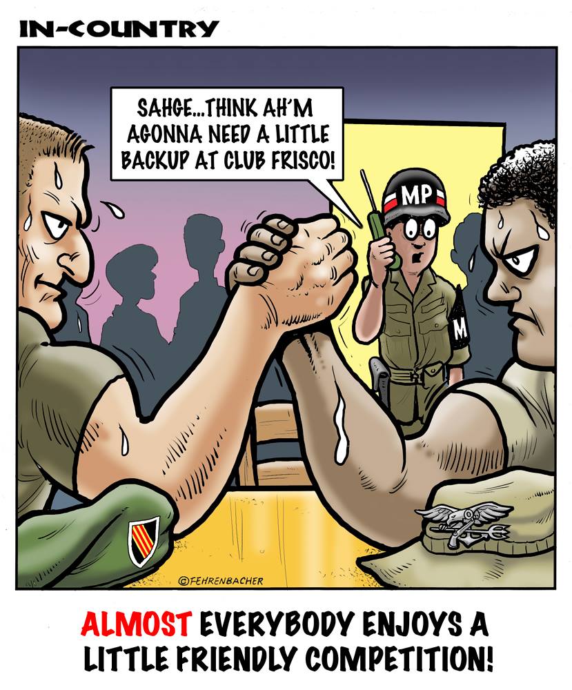 Phil enlisted in the Army in 1965 where you served for years in Vietnam. He became a graphic designer and has worked for the state of Oregon for 26 years. He retired in 2003 and started the Cartoon "In-Country". The cartoons reflect his experiences during his tour of duty in South Vietnam.