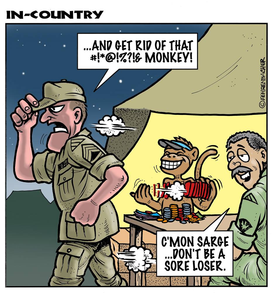 Phil enlisted in the Army in 1965 where you served for years in Vietnam. He became a graphic designer and has worked for the state of Oregon for 26 years. He retired in 2003 and started the Cartoon "In-Country". The cartoons reflect his experiences during his tour of duty in South Vietnam.