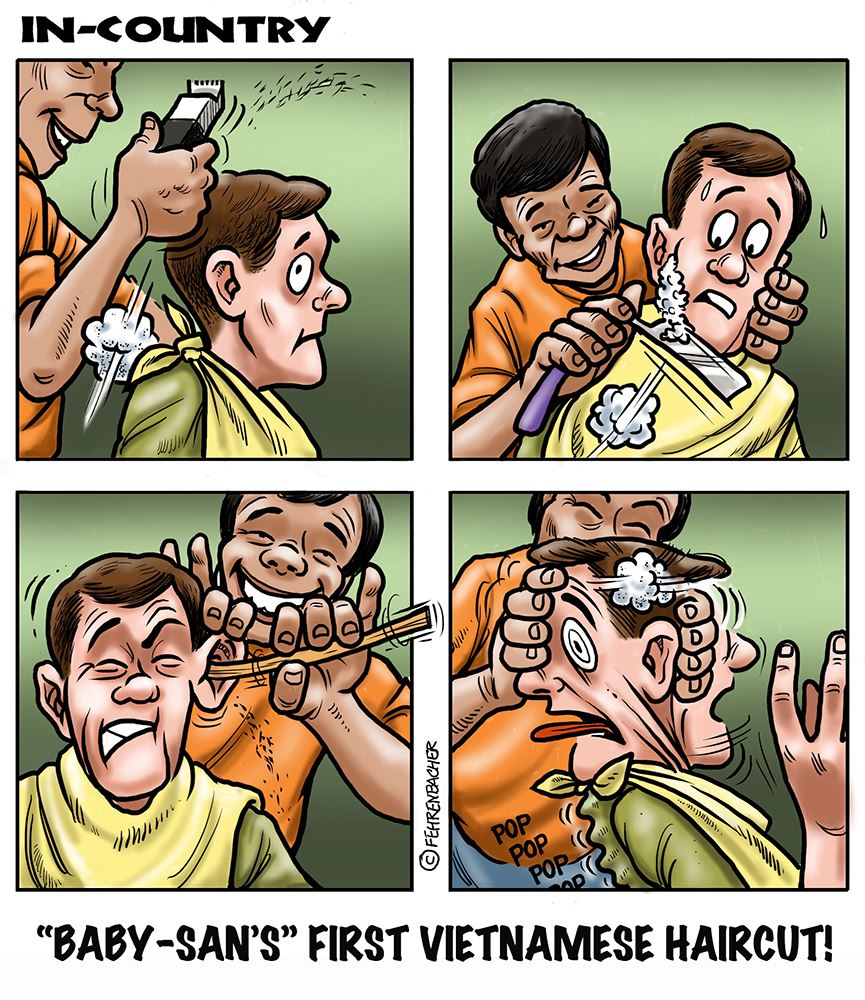 Phil enlisted in the Army in 1965 where you served for years in Vietnam. He became a graphic designer and has worked for the state of Oregon for 26 years. He retired in 2003 and started the Cartoon "In-Country". The cartoons reflect his experiences during his tour of duty in South Vietnam.