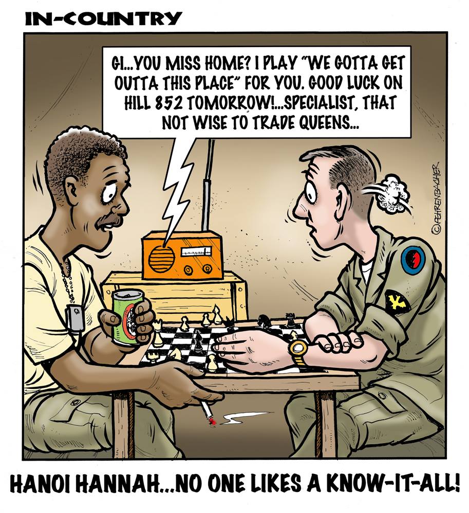 Phil enlisted in the Army in 1965 where you served for years in Vietnam.  He became a graphic designer and has worked for the state of Oregon for 26 years.  He retired in 2003 and started the Cartoon "In-Country".  The cartoons reflect his experiences during his tour of duty in South Vietnam.